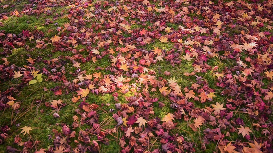 青い苔の上に敷き詰められた紅葉が映えて綺麗でした。